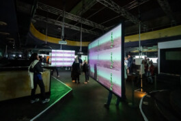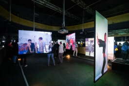 The former club "Naked" is located on Rottstraße, which was originally a revue theatre, then a table dance bar and finally a discotheque. After years of closure, its doors opened once again for Folkwang and the City’s presentation of Anouk Kruithof’s Universal Tongue, a video installation from the Museum Folkwang collection. Individuals and communities from all over the world can be seen dancing on eight large-format projection screens that extend high into the space. Kruithof and her team arranged 32 hours of YouTube and Instagram video footage into a driving soundtrack. The erstwhile nightlife venue in Essen comes to life once more; visitors are encouraged to dance between projections, thereby transforming the installation into a space for cultural understanding.